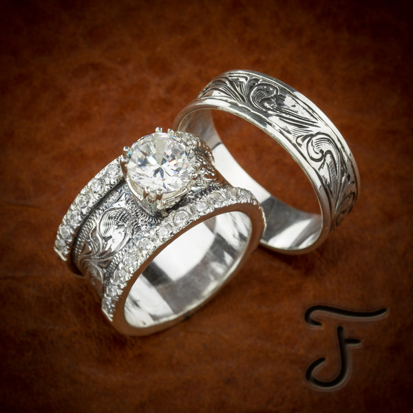 Our rings are sold individually. Wedding sets are meant to demonstrate how our rings look paired.